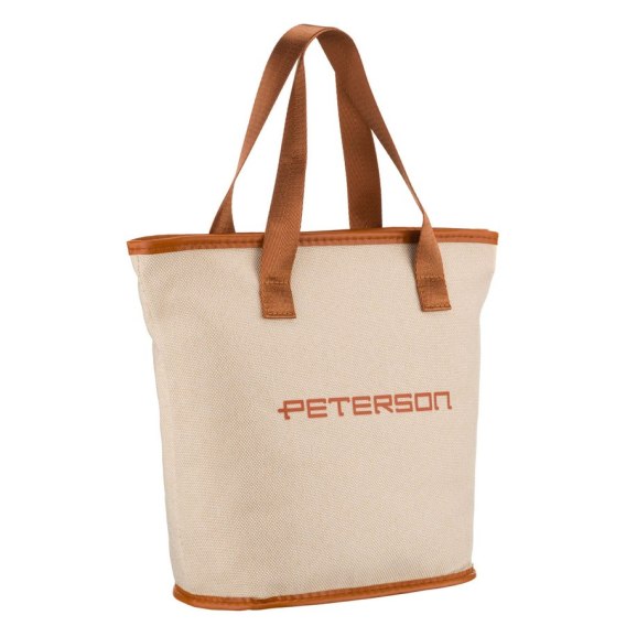 Beżowo-brązowa kosmetyczka z tkaniny syntetycznej zamykana suwakiem - Peterson