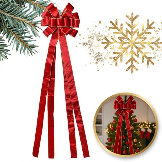 Duża czerwona kokarda XL ozdoba świąteczna na drzwi, choinkę 33 x 120cm WOZ44