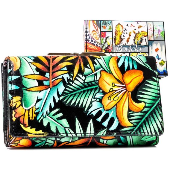 Duży portfel damski na zatrzask wykonany ze skóry naturalnej - Rovicky