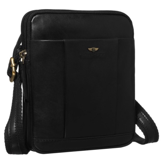 Dwukomorowa, czarna listonoszka męska ze skóry naturalnej zawieszona na regulowanym pasku - Peterson