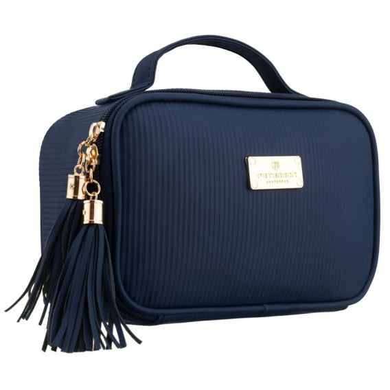 Granatowa kosmetyczka z tkaniny syntetycznej wyposażona w cztery przegródki, jednokomorowa - Peterson
