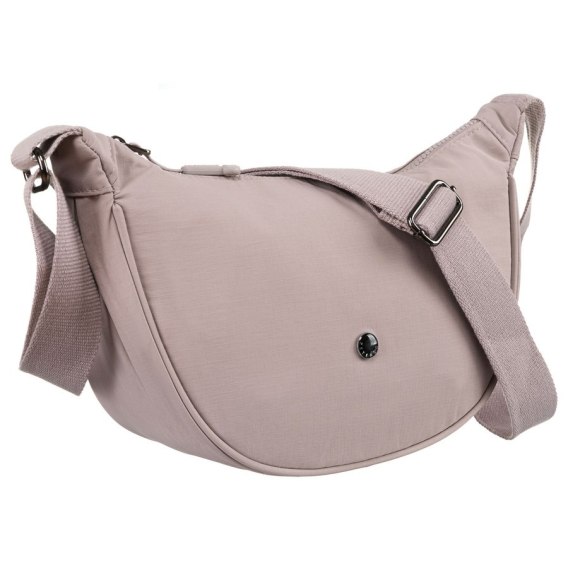 Miejsko-sportowa torebka damska wykonana z poliestru w modnym kolorze lila. Torebka zawieszona na regulowanym pasku. Jednokomorowa z dodatkowymi, praktycznymi kieszonkami. Idealna na miejskie spacery.