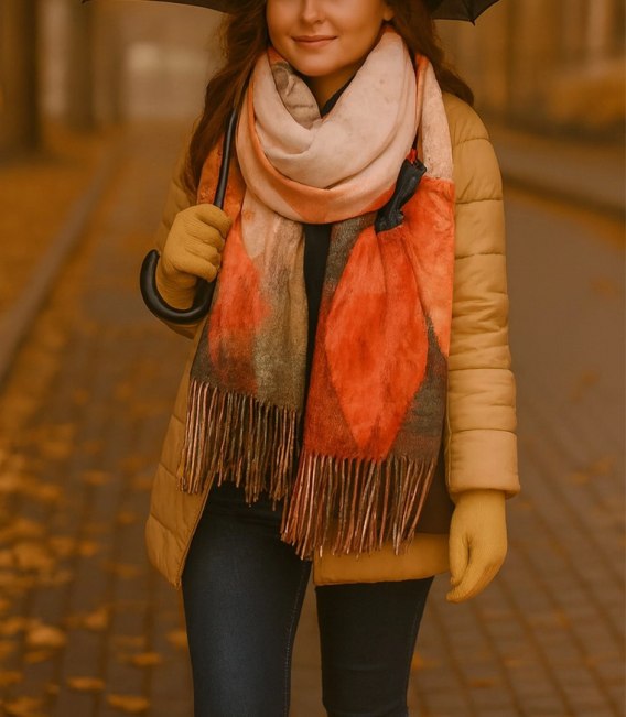 - Wszechstronny dodatek — noś jako szal, narzutkę lub owijaj jako komin