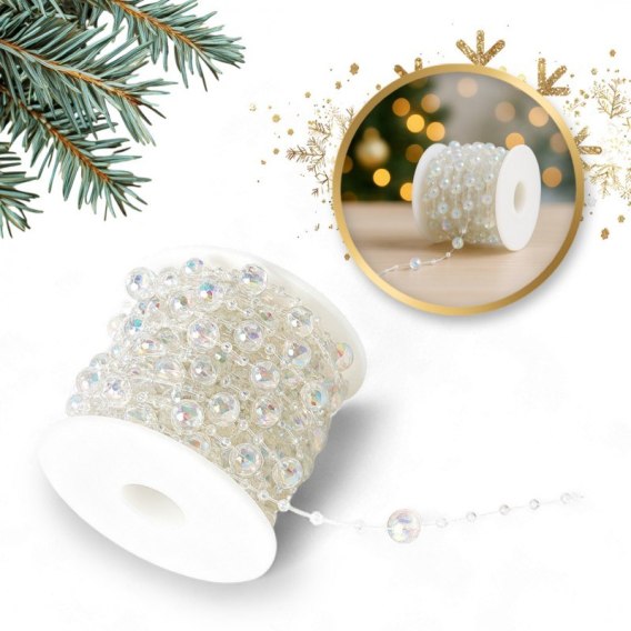 Łańcuch na choinkę 10m girlanda koraliki opalizujące BOŻE NARODZENIE WOZ40