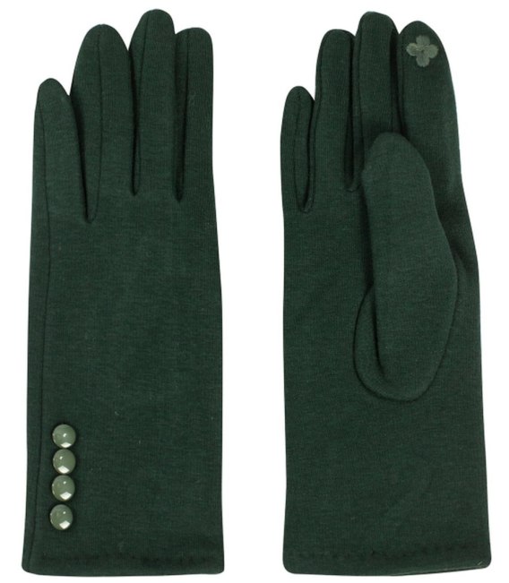 Rękawiczki damskie ocieplane futerkiem guziki Dotykowe Pięciopalczaste (Zielony)