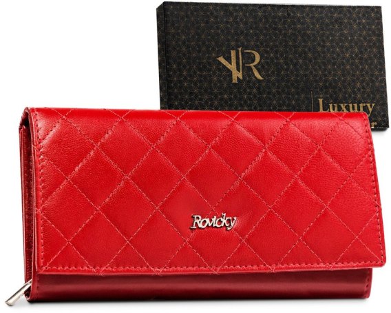 Skórzany portfel damski w orientacji poziomej na zatrzask - Rovicky