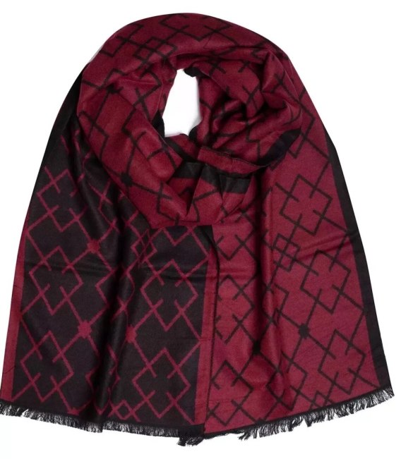 Szal męski szalik z frędzelkami we wzory Elegancki (Bordowy)