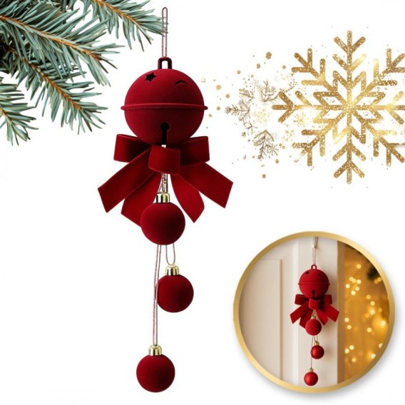 Zawieszka na choinkę, dzwoneczek z kokardą i bombkami, 1 sztuka 34cm WOZ49