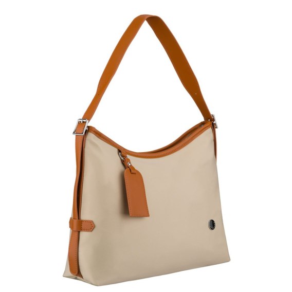 Beżowa torebka damska z poliestru i skóry ekologicznej wyposażona w kieszonkę zewnętrzną - Peterson