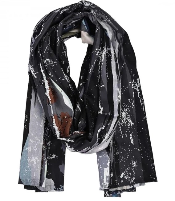 Ciepły stylowy szal szalik abstrakcyjny wzór miękki gładki 180x75 cm (Wielokolorowy || Czarny)