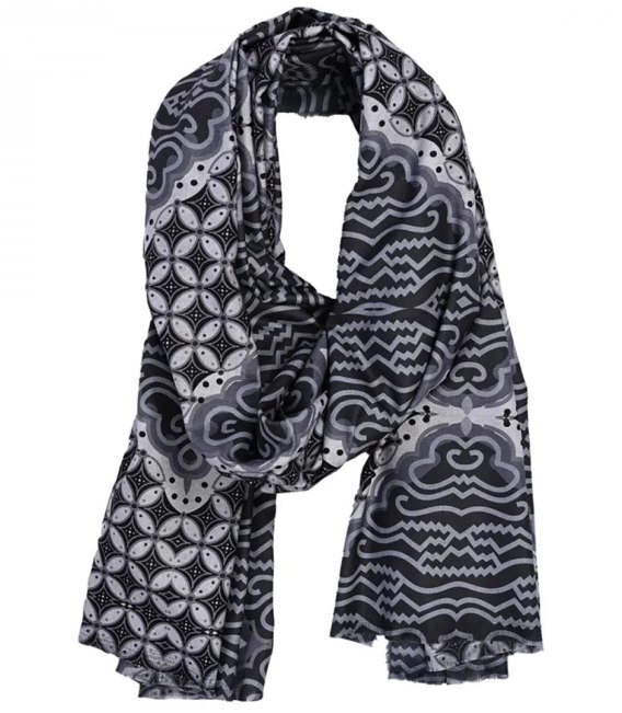 Ciepły stylowy szal szalik geometryczny wzór miękki gładki 180x75 cm (Wielokolorowy || Czarny)