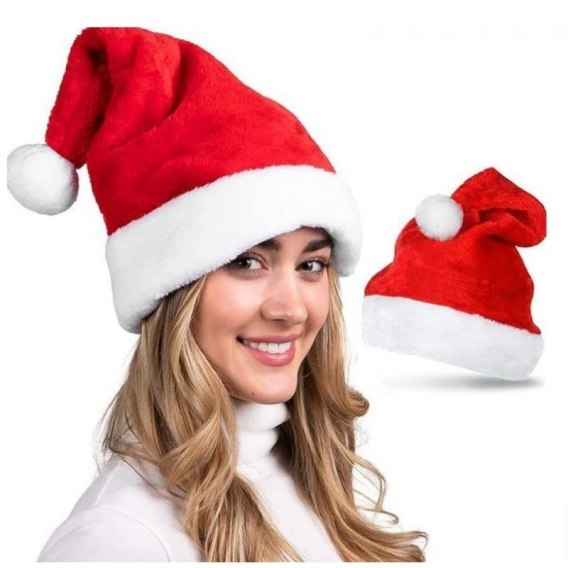 Czapka Świętego MikołajaIdealny akcent do podkreślenia świątecznego klimatu!Wymiary:Długość całkowita: 36,5 cm + 4 cm pomponSzerokość: 29,5 cm x2Waga: 40 g