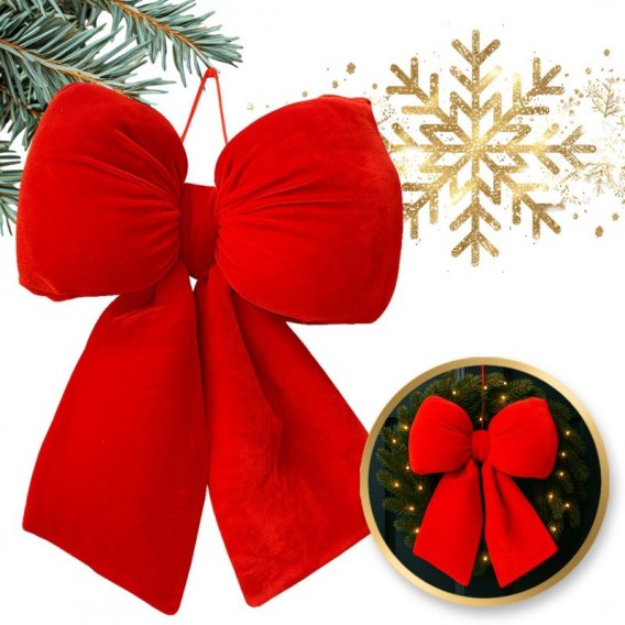 • Czerwona kokarda, aksamitna, ozdoba świąteczna 29x33cm WOZ43
