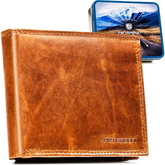 Duży, brązowy, skórzany portfel męski wyposażony w system RFID - Peterson