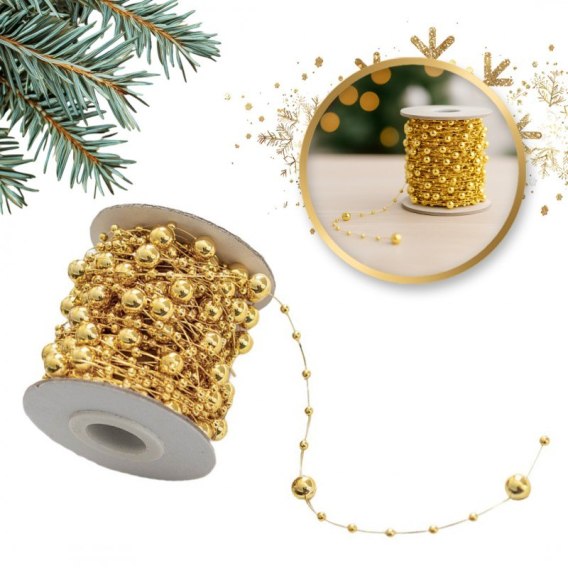Łańcuch na choinkę 10m girlanda koraliki gold BOŻE NARODZENIE WOZ13