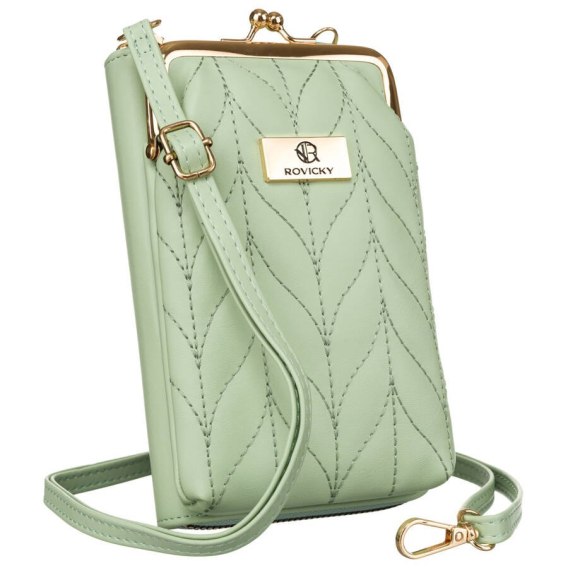 Mini torebka damska w zielonym kolorze z dopinanym i regulowanym paskiem - Rovicky