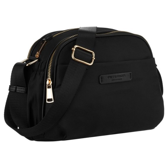 Nylonowa, czarna listonoszka damska, jednokomorowa z sześcioma kieszeniami - Peterson