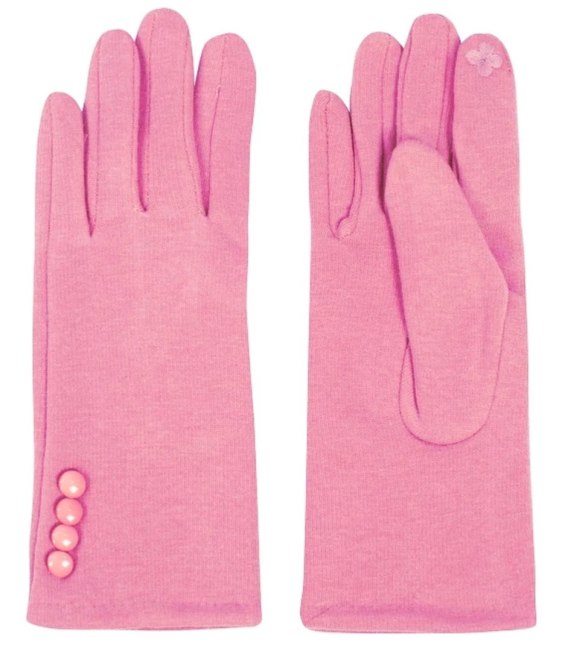Rękawiczki damskie ocieplane futerkiem guziki Dotykowe Pięciopalczaste (Różowy)