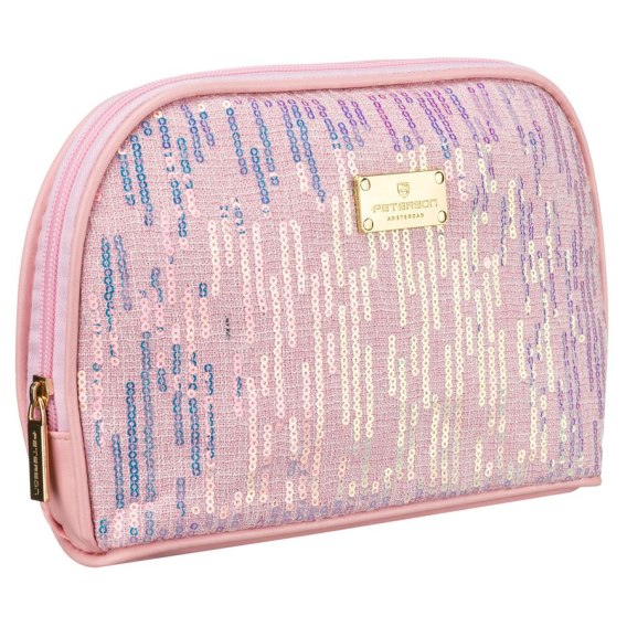 • Różowa kosmetyczka z materiału syntetycznego, jednokomorowa - Peterson