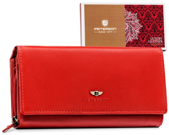 - Ponadczasowa, klasyczna czerwień | Prosty, klasyczny design i wysoki poziom funkcjonalności. Model w orientacji poziomej zapinany na zatrzask. Front portfela zdobi oryginalne logo marki.