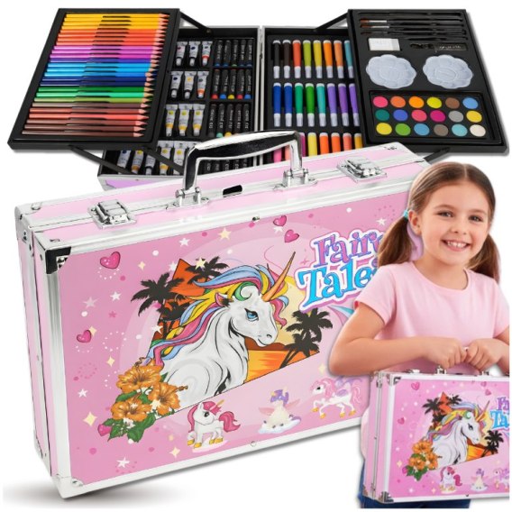 ⭐ZESTAW DO MALOWANIA DLA DZIECI ARTYSTYCZNY PLASTYCZNY WALIZKA 145el jednorożec